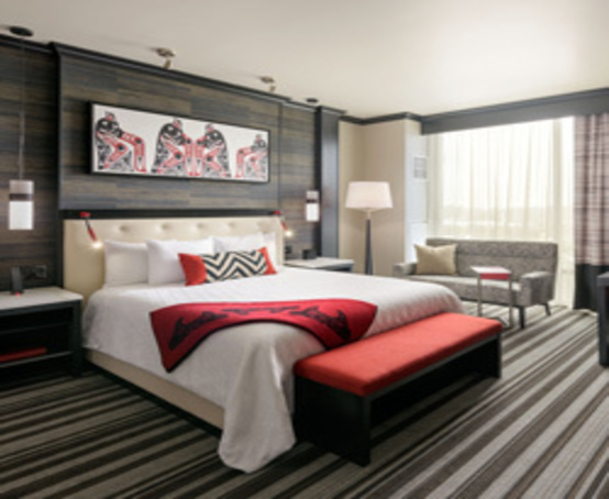 The stunning guest rooms have styling that pays homeage to the rich history and culture of the Tulalip Tribes